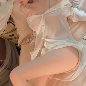 Satisfy all your curves and your sense of humor with this playful Plus Size Shirt Style Two Piece Sheer Lingerie. Show off your confidence and charm with a little bit of sass in this quirky and fun set. (Size inclusive and made for comfort!)